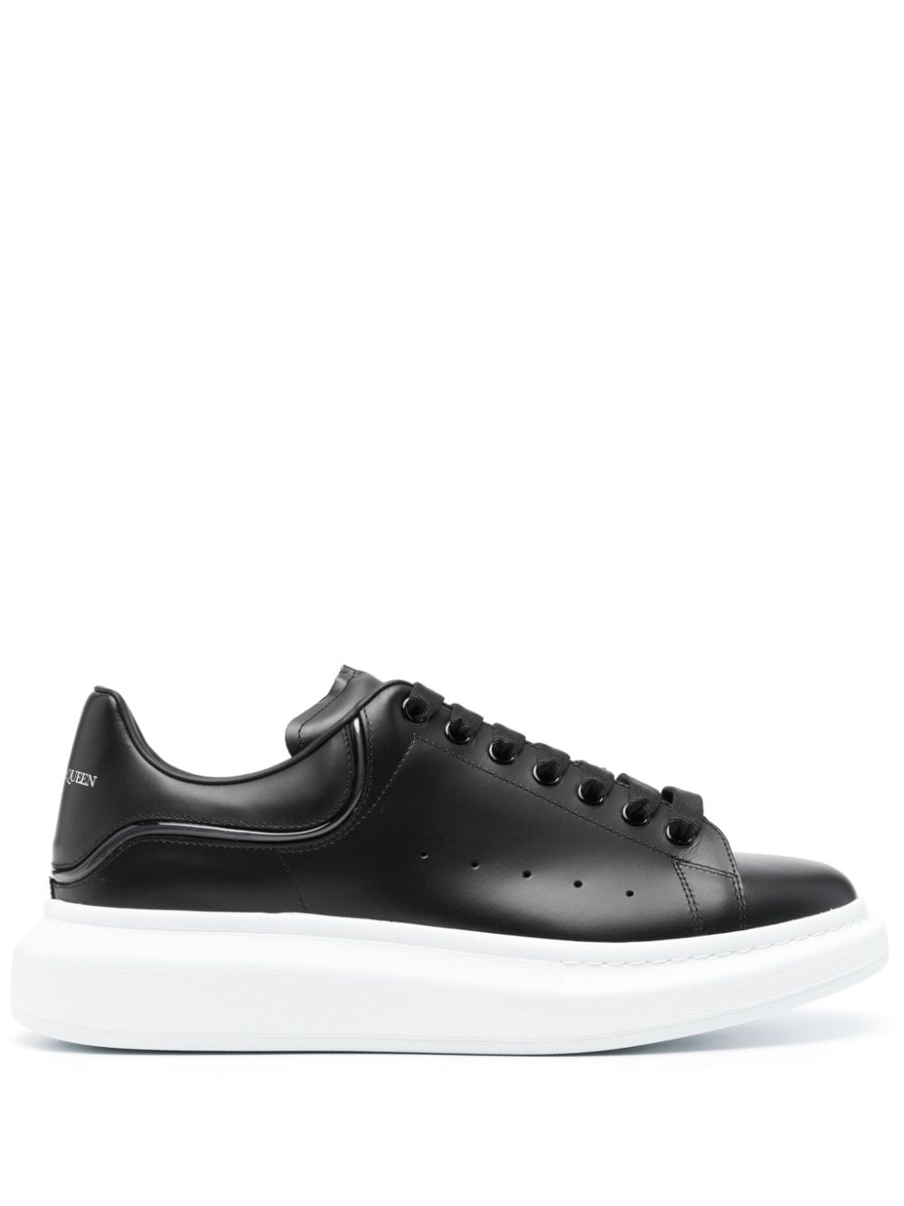 Larry leather sneakers Alexander McQueen's Larry sneakers are crafted from leather with an understated silhouette. This iteration arrives in black with a white rubber sole and subtle branding. Highlights - Black - Calf leather - Smooth grain - Perforated detailing - Logo-debossed tongue - Branded heel counter - Round toe - Front lace-up fastening - Branded leather insole - Flatform sole - This piece comes complete with a protective dust bag. Composition Outer: Calf Leather 100% Lining: Calf Leather 100% Sole: Rubber 100% SIZE & FIT Measurement HEEL 2 in(5 cm) Sole height 1 in(2.5 cm)