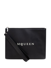 leather clutch bag Highlights - Black - Top zip fastening - Logo-print at the front - Rectangle shape - Main compartment - Wrist strap - Internal slit pocket Made in Italy Composition Outer: Calf Leather 100%