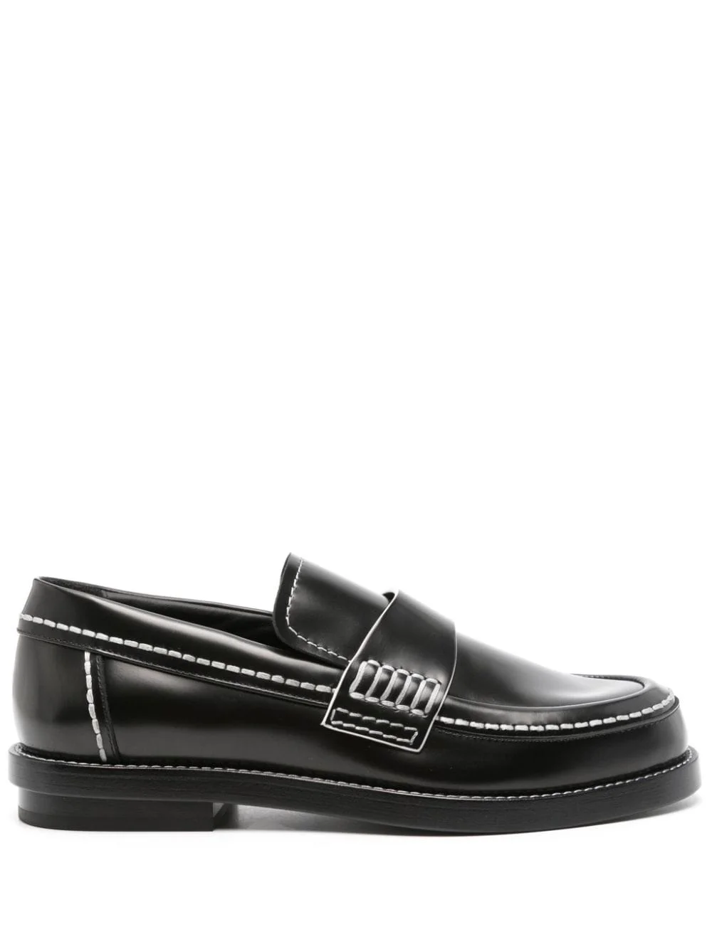 leather loafers Highlights - Coffee brown - Calf leather - Contrast stitching - Strap detailing - Oversize tongue - Apron toe - Branded leather insole - Leather sole Made in Italy Composition Sole: Calf Leather 100% Lining: Calf Leather 100% Outer: Calf Leather 100% SIZE & FIT Measurement HEEL 0.98 in(2.5 cm)
