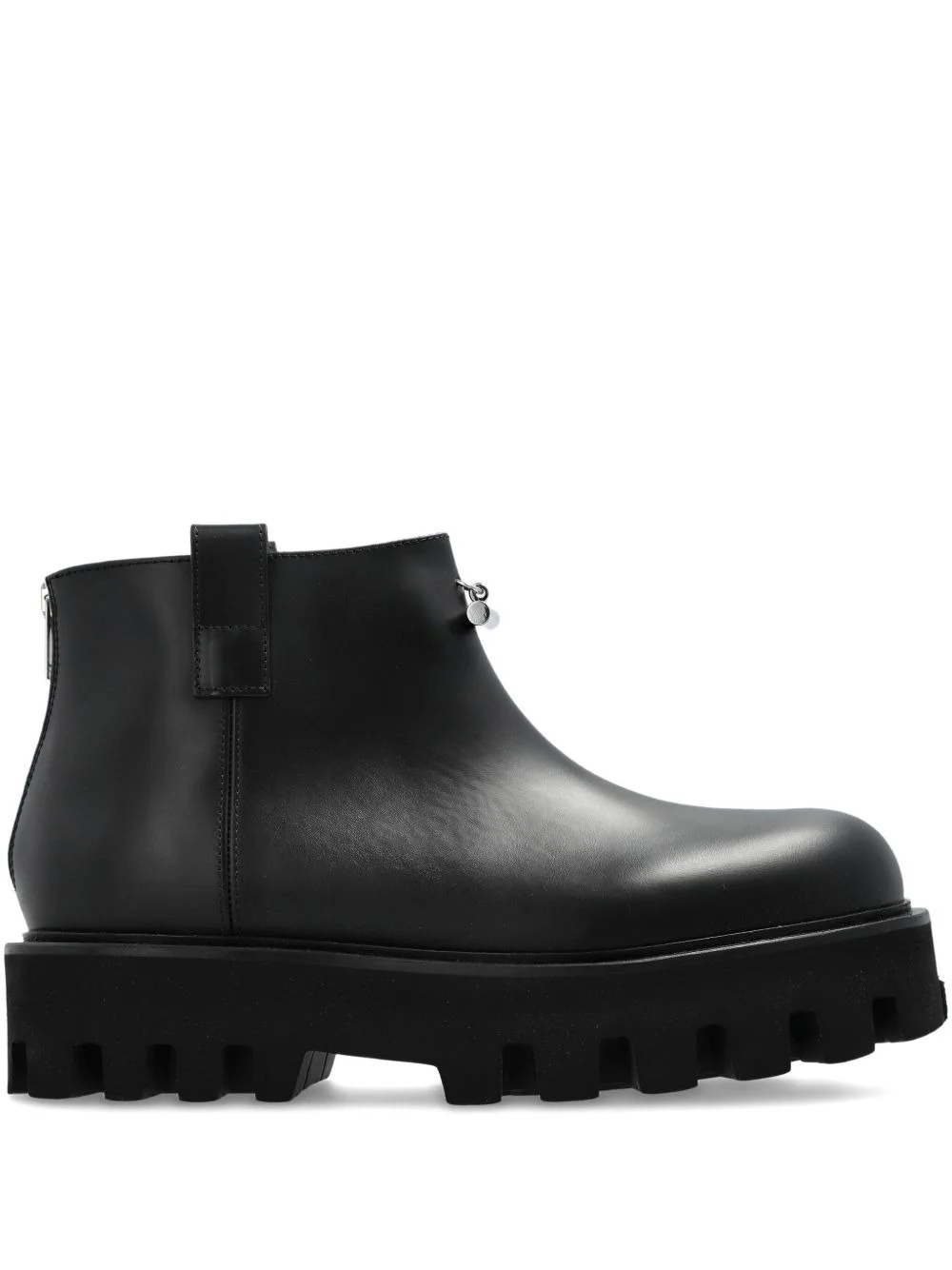 zip-fastening lug-sole boots Highlights - Black - Leather upper - Rear zip closure - Silver-tone clasp - Rubber sole - Round toe Made in Italy Composition Sole: Rubber 100% Outer: Calf Leather 100% Lining: Calf Leather 100%