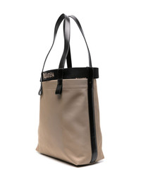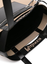 logo-embroidered leather tote bag Highlights - Black/beige - Calf leather - Logo-embroidered strap - Open top - Two flat shoulder straps - Front zip-fastening pocket - Main compartment - Internal patch pocket Made in Italy Composition Outer: Polyamide 100%, Calf Leather 100% SIZE & FIT Model measurements Height 6 ft 2 in(1.87 m) Bust/Chest 36.41 in(92.5 cm) Hips 37 in(94 cm) Waist 29.52 in(75 cm) Measurement DEPTH 5.51 in(14 cm) HANDLE 9.84 in(25 cm) HEIGHT 14.96 in(38 cm) WIDTH 13.77 in(35 cm)