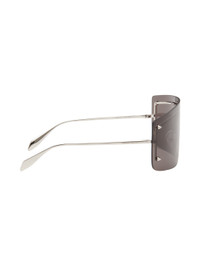 Shield-style rimless metal-frame sunglasses in silver-tone. · Gray lens with 100% UVA/UVB protection · Studs at face · Adjustable rubber nose pads · Logo engraved at temples · Hardside case included · Size: 130 Supplier color: Silver/Silver/Grey