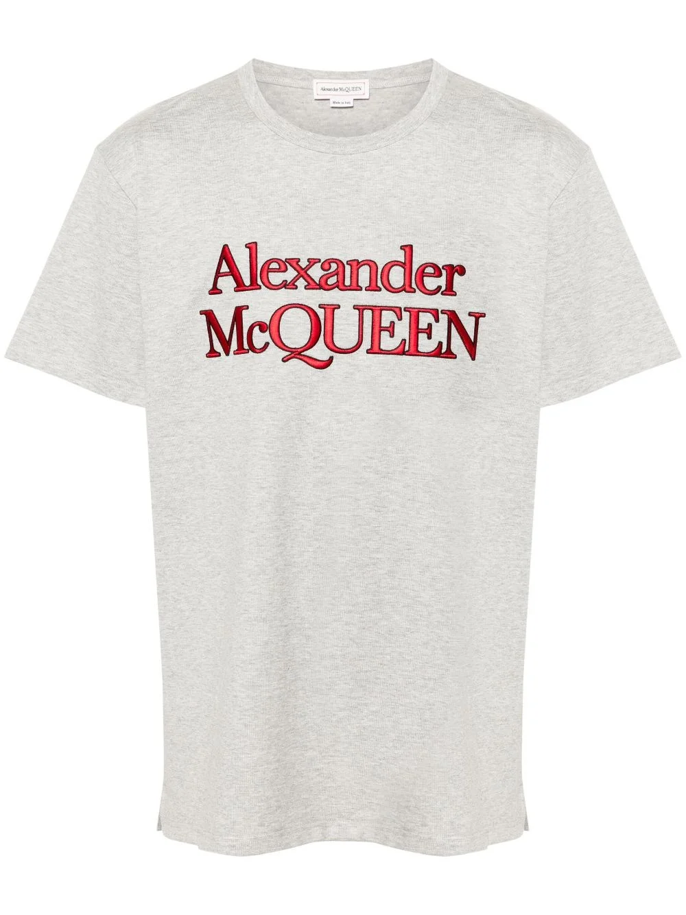 logo-embroidered T-shirt Highlights - Grey - Cotton - Jersey texture - Melange effect - Embroidered logo to the front - Crew neck - Drop shoulder - Short sleeves - Straight hem - Unlined Made in Italy Composition Cotton 100%, Viscose 80%, Polyester 20% SIZE & FIT Model measurements Height 6 ft 1 in(1.85 m) Bust/Chest 35.82 in(91 cm) Hips 37.79 in(96 cm) Waist 29.13 in(74 cm) FittingInformation Designed to be unstructured, offering a loose fit throughout Made from a midweight non-stretch fabric, this piece offers minimal elasticity when worn This piece fits true to size – take your usual size