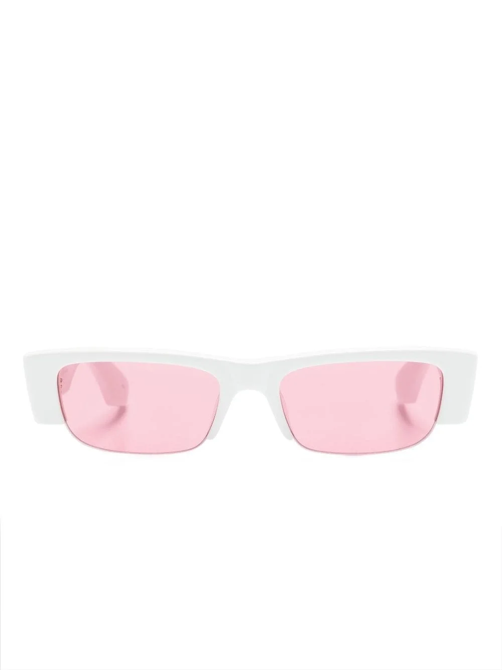 Graffiti slashed rectangle sunglasses Highlights - Chalk white - Acetate - High-shine finish - Pink tinted lenses - Rectangle frame - Wide style - Signature graffiti print - Uv-protective lenses - These glasses come with a protective case. Made in Italy Composition Acetate 100% SIZE & FIT Measurement Arm Length 5.9 in(15 cm) Bridge Width 0.7 in(1.8 cm) Lens Diameter 2.12 in(5.4 cm) Total Width 5.7 in(14.5 cm)