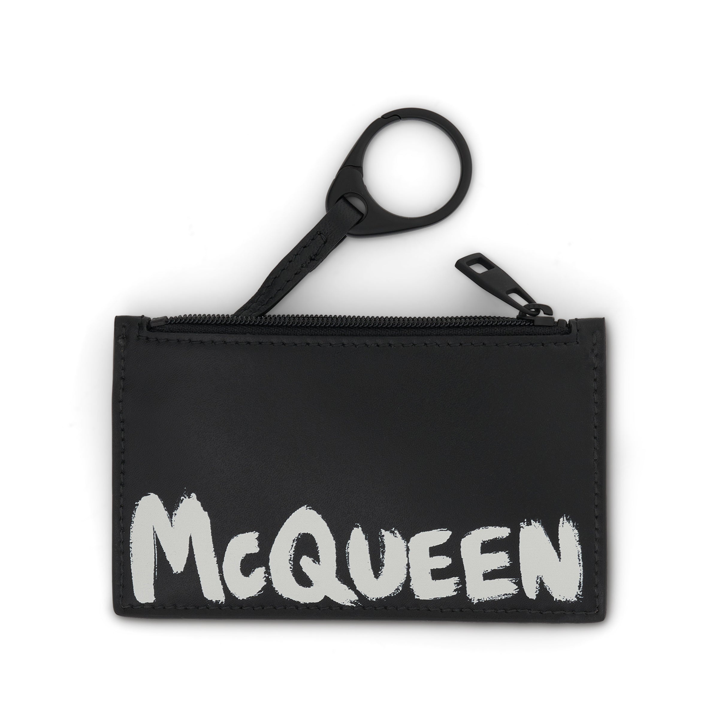 Alexander McQueen logo-print leather wallet •Composition: Calf Leather 100% •Black/white •Logo print to the front •Top zip fastening •Main compartment SKU: 6831171AAMJ1070