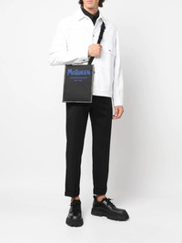 logo-print messenger bag black/royal blue leather trim leather strap logo print to the front internal slip pocket Made in Italy Composition Outer: Leather 100%, Fabric 100% SIZE & FIT Model measurements Height 6 ft 2 in(1.89 m) Bust/Chest 37.79 in(96 cm) Hips 37 in(94 cm) Waist 29.92 in(76 cm) Measurement HEIGHT 11.41 in(29 cm) STRAP 23.22 in(59 cm) WIDTH 9.44 in(24 cm)