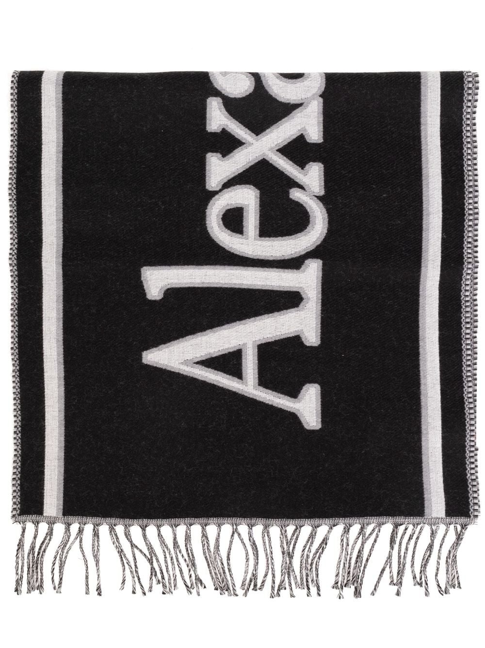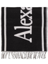 logo-print wool scarf Highlights - Black/off-white - Wool - Fringe detailing - Logo print to the front - Wraparound style Made in Italy Composition Wool 100%