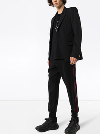 LET'S BE REAL. YOU KNOW IT. WE KNOW IT. EVEN THESE BLACK LOGO TAPE TRACK PANTS FROM ALEXANDER MCQUEEN KNOW IT. THAT THEY'LL BE WORN ON THE SOFA WHILST EATING CRISPS. NO JUDGEMENT HERE. HAPPY SNACKING! FEATURING AN ELASTICATED WAISTBAND, A TAPERED LEG, A REGULAR LENGTH, ELASTICATED CUFFS, A REAR ZIPPED POCKET AND A LOGO TAPE STRIPE TO EACH SIDE.