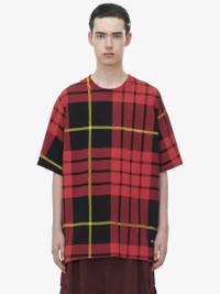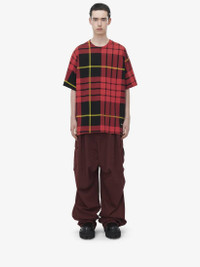 Crew neck T-shirt. Black, red and yellow MacQueen tartan print on heavy mercerised jersey. Contrasting back in black. Finished with a gold metal McQueen logo plate. Product details - Crew neck - Short sleeves - Product code: 815076QTAC80512 - Made in Italy - Material: Cotton