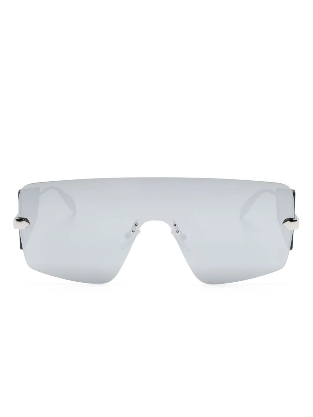 Mask sunglasses Highlights - Silver-tone - Metal - Oversize shield frame - Mirrored lenses - Uv protection - Nose pads - Logo-engraved arm - Oversize arms - Curved tips - These glasses come with a protective case. Made in Italy Composition Metal (Other) 100%, Acrylic 100% SIZE & FIT Measurement Arm Length 5.7 in(14.5 cm) Bridge Width 1.06 in(2.7 cm) Lens Diameter 2.75 in(7 cm) Total Width 5.66 in(14.4 cm)