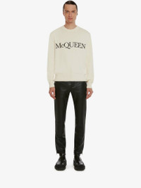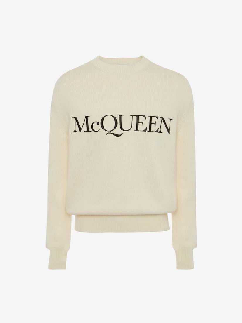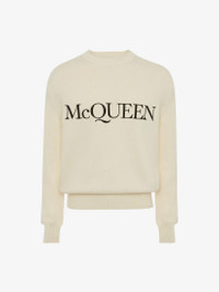 Ivory cotton crew-neck sweater with an embroidered McQueen signature. Material:100% Cotton Product Code:651184Q1XAY9241