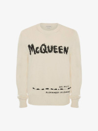 Mcqueen Graffiti Crew Neck Jumper in Ivory/black