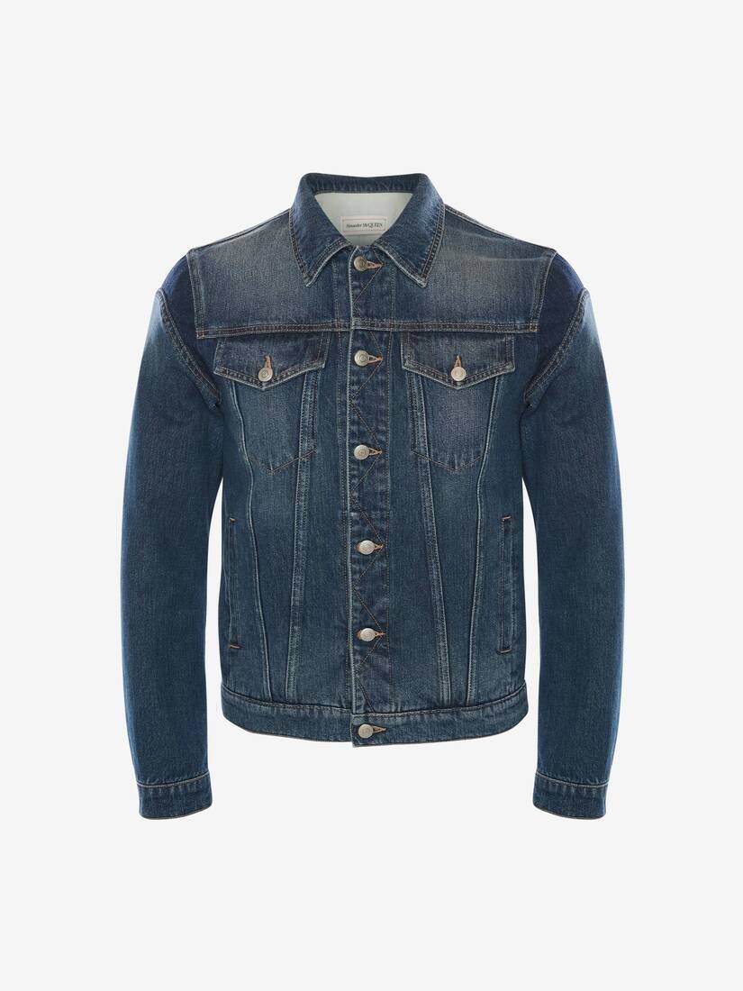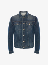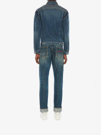 Blue washed Japanese Selvedge denim jacket featuring a tonal embossed McQueen Graffiti logo on the back. Finished with four pockets on the front and Alexander McQueen signature metal button fastenings. Material: 100% Cotton