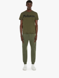 Khaki organic jersey joggers detailed with a screen printed McQueen Graffiti logo. The sweatpants have two side pockets, an elasticated waist and hem. Finished with a concealed zip fly and internal drawstrings. Material:100% Cotton Product Code:662580QSZ710904