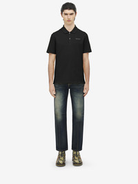 Classic polo shirt. Black piquet jersey with McQueen logo embroidery on the chest. Finished with tonal ribbed trims. Product details - Point collar - Short sleeves - Product code: 839229QXAAK1000 - Made in Italy - Material: Cotton