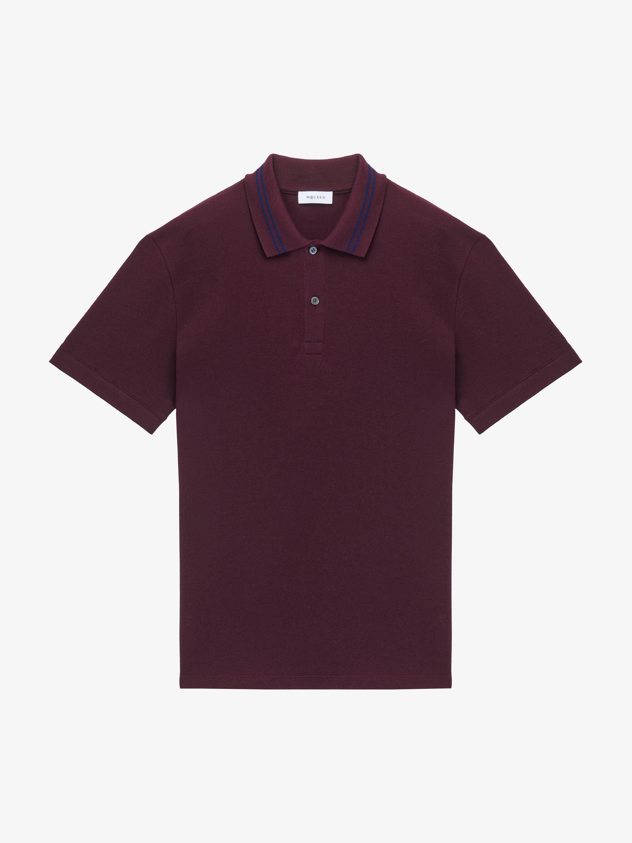 Polo shirt in bordeaux cotton piquet. Point collar with contrast McQueen logo and frogging detail print on the back. Finished with ribbed trims. Product details - Point collar - Short sleeves - Product code: 847736QXAAK5050 - Made in ITALY - Material: 100% Cotton