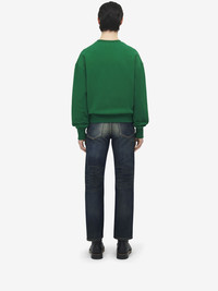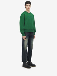 Crew neck sweatshirt. Dark viridian loopback jersey with a flocked McQueen logo. Finished with tonal ribbed trims. Product details - Crew neck - Long sleeves - Product code: 839216QTADU0310 - Made in Italy - Material: Cotton