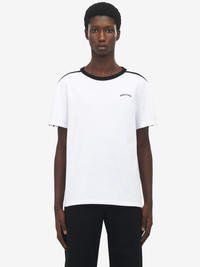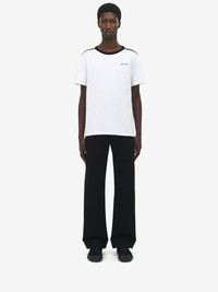 Crew neck T-shirt. Optical white washed jersey with a printed McQueen logo. Product details - Crew neck - Short sleeves - Product code: 832342QXAA89000 - Made in Italy - Material: Cotton