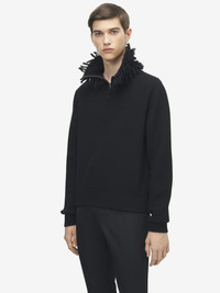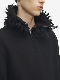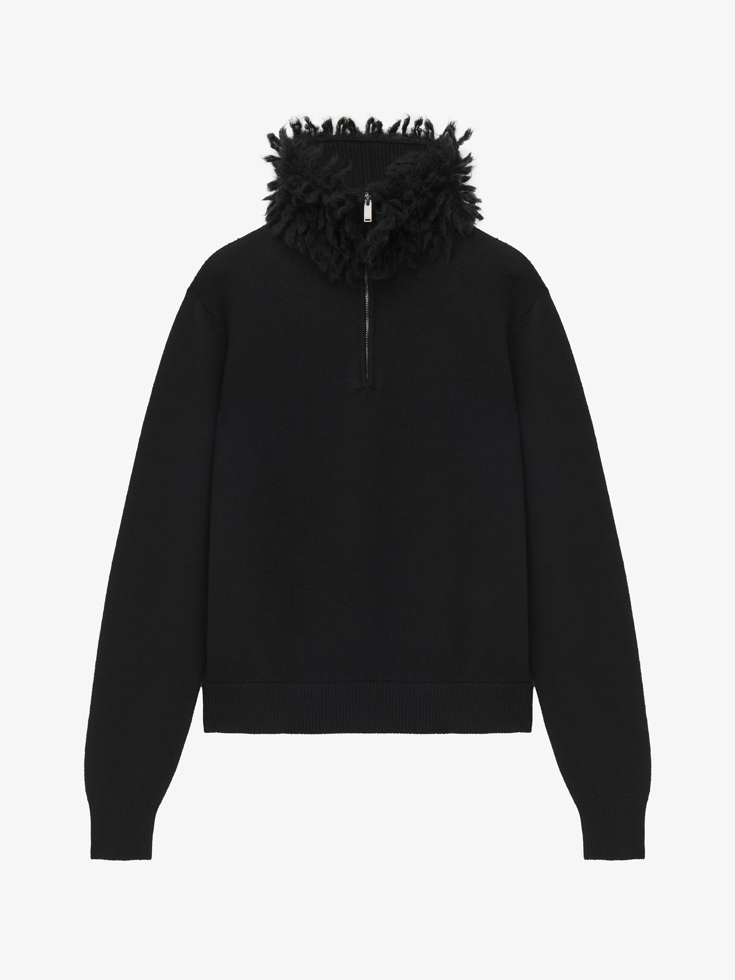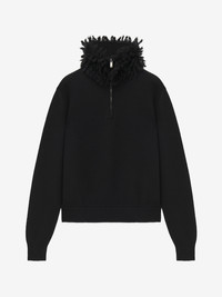 Jumper in black wool viscose jersey. Half-zip stand-up collar with tonal mohair fringe detailing. Product details - Stand-up collar - Long sleeves - Ribbed trims - Product code: 848919Q1BFF1000 - Made in ITALY - Material: 82% Wool, 18% Viscose