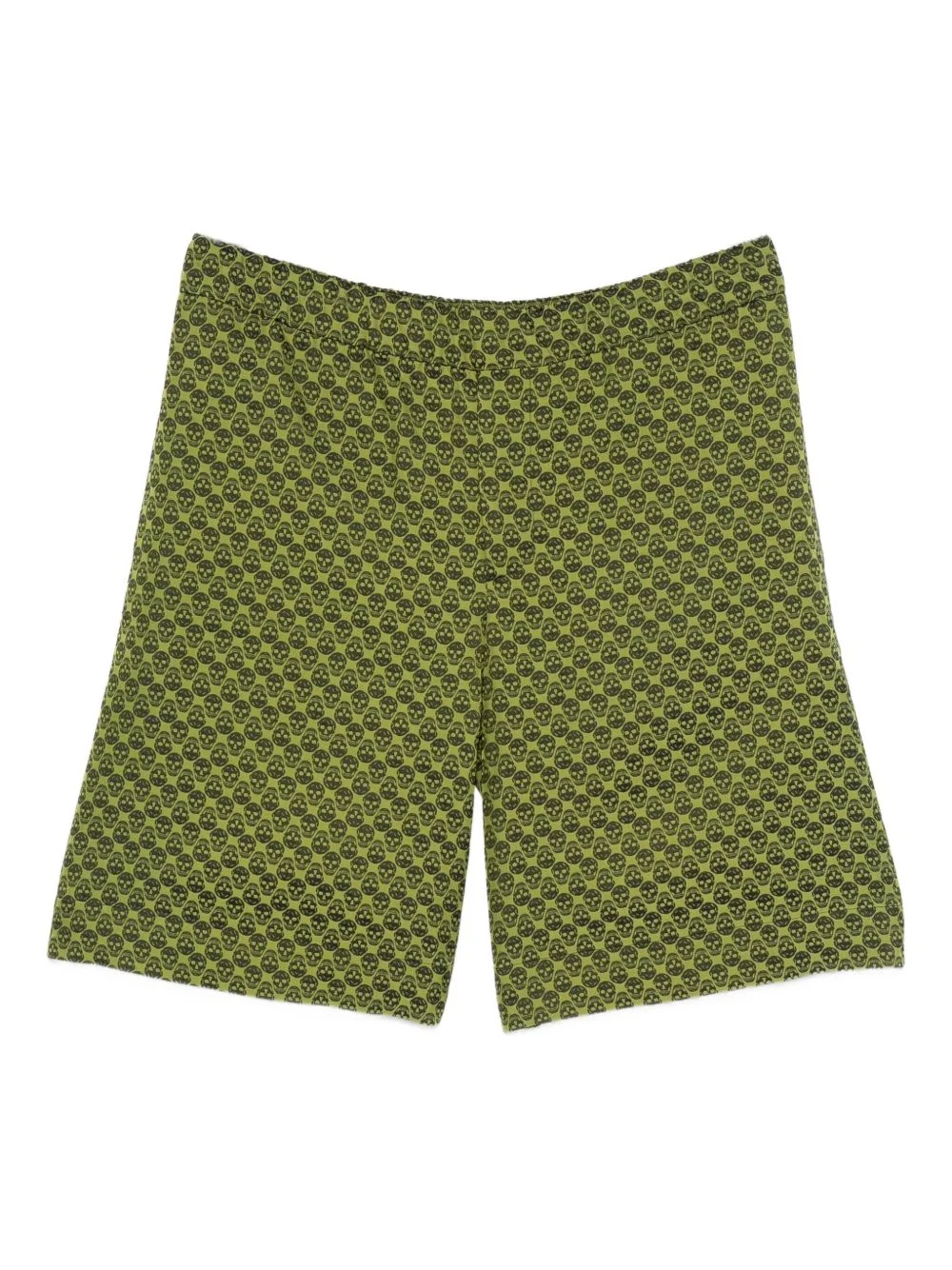 skull-print shorts Highlights - Olive green - Skull print - Elasticated waistband - Knee length Made in Italy Composition Viscose 78%, Polyester 22% SIZE & FIT Model measurements Height 6 ft 3 in(1.9 m) Bust/Chest 35.43 in(90 cm) Hips 35.82 in(91 cm) Waist 27.95 in(71 cm) Washing instructions Read Manufacturer Guidelines