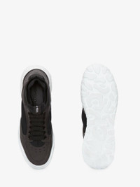 Black scuba and leather lace-up tech court trainer trimmed with tonal TPU panels. The trainer features large flat laces and a lightweight signature leopard and speckled rubber sole. Finished with an Alexander McQueen signature on the tongue and heel counter. The trainers come with an additional set of laces. Material:100% Calf leather Product Code:727366WIAAU1558
