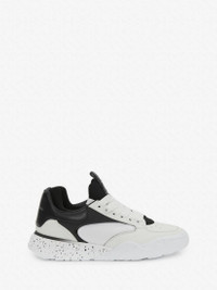 Black and white scuba and leather lace-up tech lace-up court trainer trimmed with TPU panels. The trainer features large flat laces and a lightweight signature leopard and speckled rubber sole. Finished with an Alexander McQueen signature on the tongue and heel counter. The trainers come with an additional set of laces. Material:100% Calf leather Product Code:727366WIAAV9061