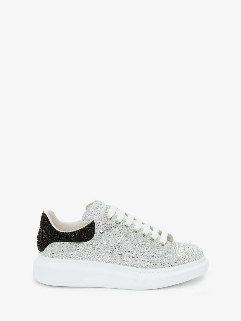Bi-colour crystal-embellished lace-up sneaker. The sneaker features large flat laces and an oversized rubber sole. Finished with an Alexander McQueen signature on the heel counter. Oversized rubber sole with signature stamp design. The sneakers come with an additional lace set. To lessen our environmental impact and to reduce cotton consumption, we will no longer be providing a dust bag with our sneakers. Product details - Please note, standard Alexander McQueen packaging is not available on employee sale purchases. - All sales are final and may not be returned or exchanged. Some products may present slight imperfections and all products are sold on an “as is”, final sale basis. - All products purchased by the employees are strictly personal and may not be resold. Failure to comply with the Policy will result in serious disciplinary measures. - Product code: 604223WHCE49329 - Made in Italy - Material: Goatskin