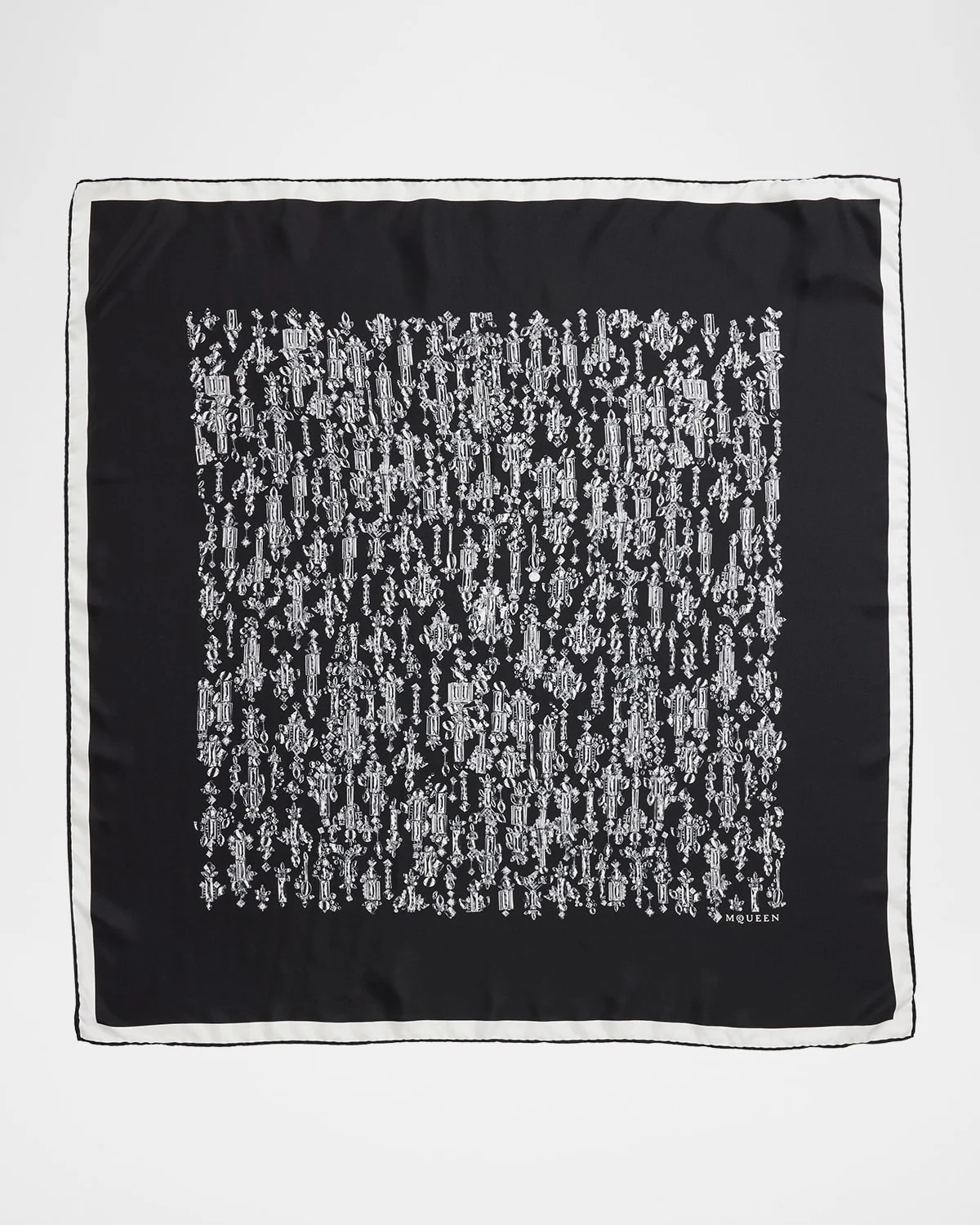 McQueen silk neck scarf showcases an elegant crystal pattern Logo signature on the corner Contrast border Silk Dry clean Made in Italy