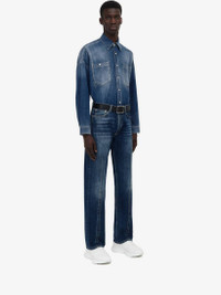 Men's Darted Denim Shirt in Washed Blue