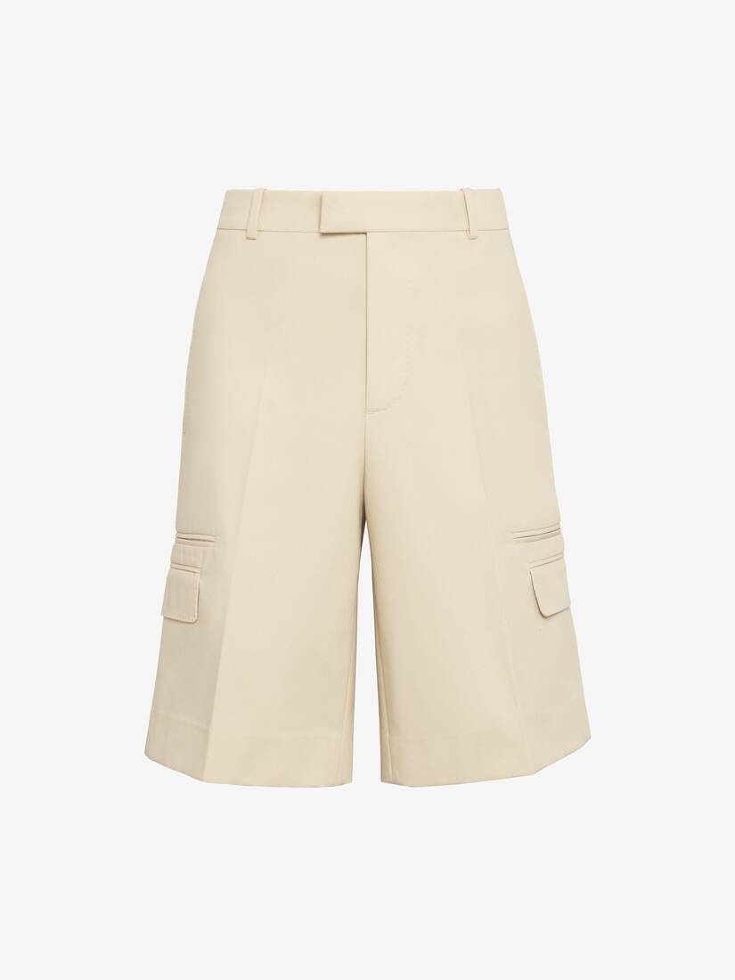 Men's Double Pocket Tailored Shorts in Pale Beige