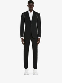 Tailored cigarette trousers in black wool gabardine. The trousers feature two side bands with silver-tone metal eyelets and two buttoned welt pockets on the back. Finished with a concealed zip and hook fastening. • Made with certified wool
