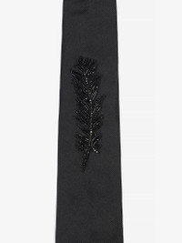Black silk tie featuring a Feather jet embroidery crafted with tonal beads and placed just under the knot. Product Details: • Blade width: 5cm Material:100% Silk Product Code:7518174036E1000