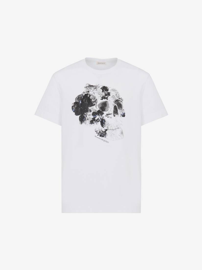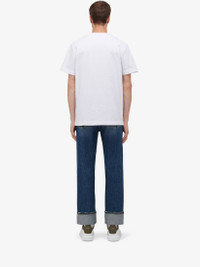 White cotton jersey crew neck T-shirt featuring a black Fold Skull print and the Alexander McQueen logo. The T-shirt is cut for a regular fit. Product Details: • Crew neck • Short sleeves • Regular fit • Made with organic cotton yarn Material:100% Cotton Product Code:781994QTABE0909