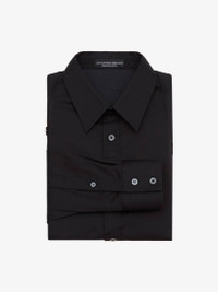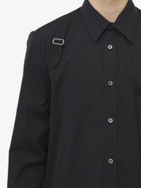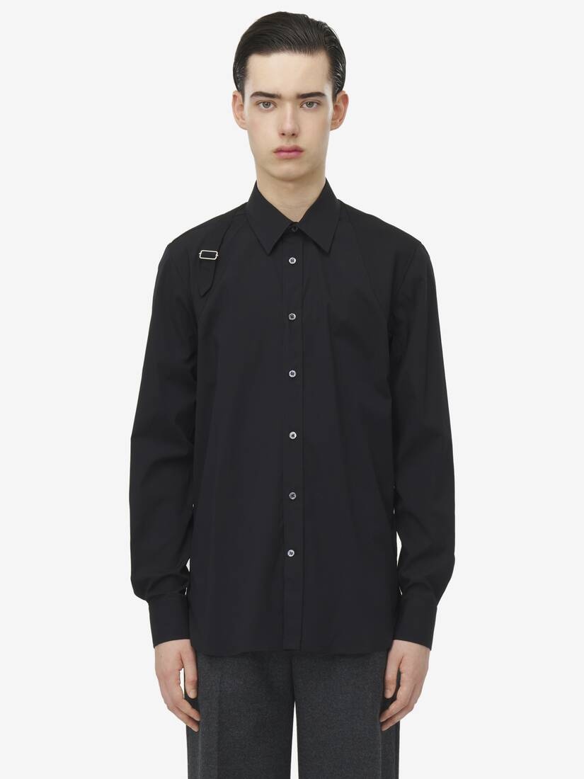 Black cotton poplin harness shirt with detailed with a metal buckle. Finished with a buttoned front and a double button cuff. Product details - Point collar - Front button fastening - Product code: 624753QPN441000 - Made in Italy - Material: 78% Cotton, 16% Polyamide, 6% Elastane