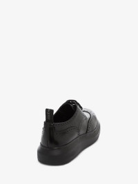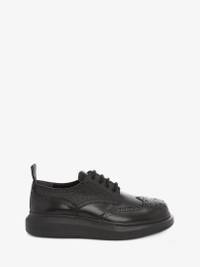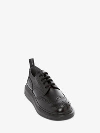 Black shiny calfskin leather lace-up with brogue detailing and an oversized rubber sole. Finished with an Alexander McQueen signature in contrast on the ribbon tabs. Material:100% Calfskin Product Code:586200WHX531000