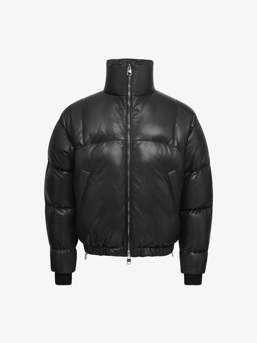 Men's Leather Puffer Jacket in Black