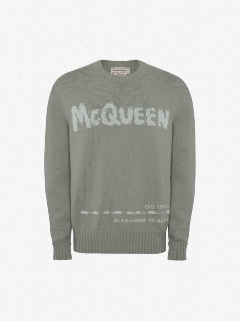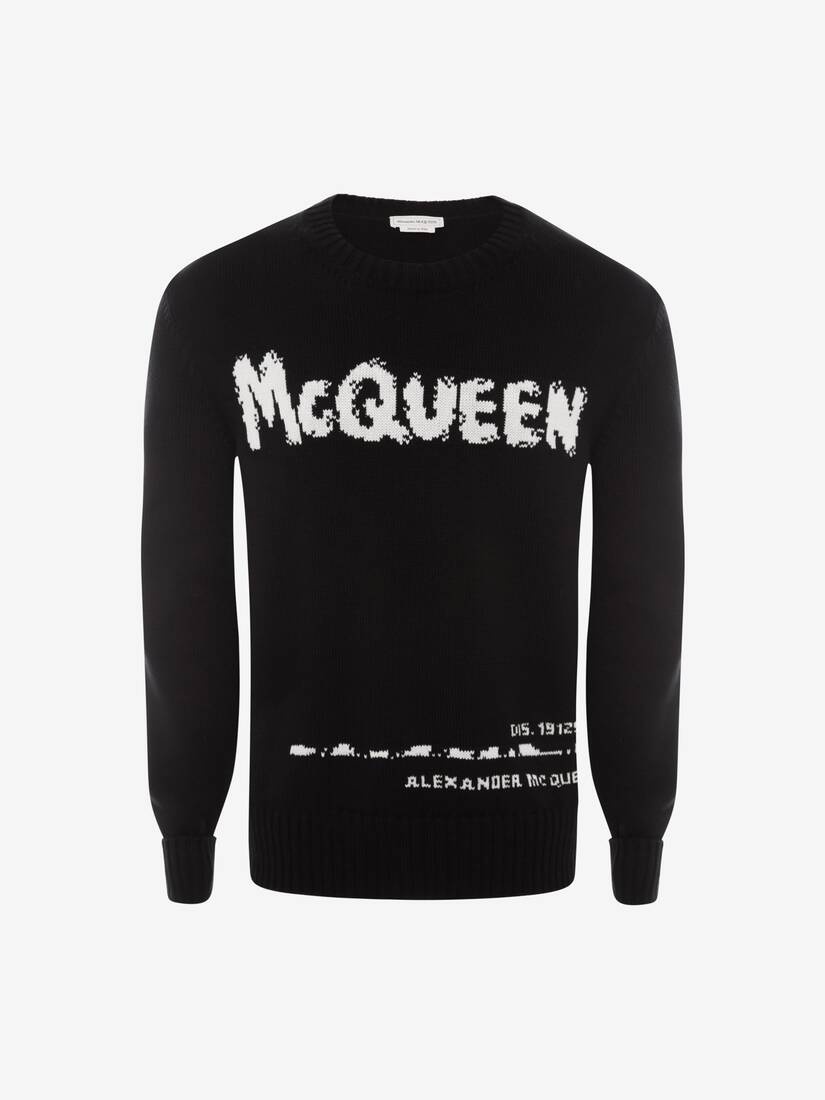 Men's McQueen Graffiti Crew Neck Sweater in Black