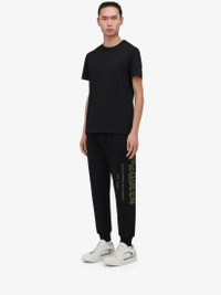 Black loopback jersey joggers detailed with a khaki screen-printed McQueen Graffiti logo. The sweatpants have two side pockets and an elasticated waist and hems. Finished with concealed zip fastening and internal drawstrings. Product Details: • Elasticated waist and hem • Concealed zip fastening • Made with organic cotton yarn Material:100% Cotton Product Code:688714QTAAB0519