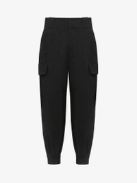 Military trousers in black wool gabardine featuring two cargo pockets and two slit pockets on the sides. The trousers are finished with a concealed zip and hook fastening. Product details - Belt loops - Side pockets - Concealed zip and hook fastening - Made with certified wool yarn - Product code: 771974QUAAC1000 - Made in Italy