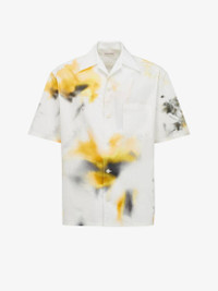 White and yellow cotton poplin bowling shirt detailed with an engineered Obscured Flower print. The shirt features a Hawaiian collar and a patch pocket on the chest. Finished with a button fastening. Product Details: • Camp collar • Front button fastening • Boxy fit • Made with organic cotton yarn Material:100% Cotton Product Code:778045QOAAK9115