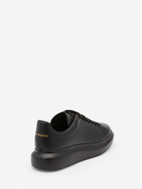 Black smooth calf leather sneaker with rounded toe and tonal black heel panel. Perforated air holes, large flat laces and McQueen signature on tongue and heel. Leather lined. Tonal black oversized rubber sole. To lessen our environmental impact and to reduce cotton consumption, we will no longer be providing a dust bag with our sneakers. Product details - The style fits true to size - Product code: 553680WWAAN1002 - Made in Italy - Material: 100% Calf Leather