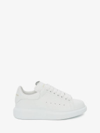 White smooth calf leather lace-up sneaker with rounded toe and trimmed with black leather heel detail. Large flat laces and Alexander McQueen signature on tongue and heel counter. Oversized rubber sole. The sneaker comes with an additional set of white shoelaces. To lessen our environmental impact and to reduce cotton consumption, we will no longer be providing a dust bag with our sneakers. Product details - The style fits true to size - Product code: 553680WIEE09000 - Made in Italy - Material: 100% Calfskin