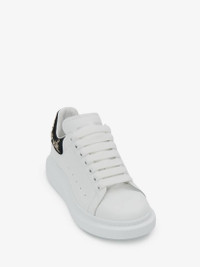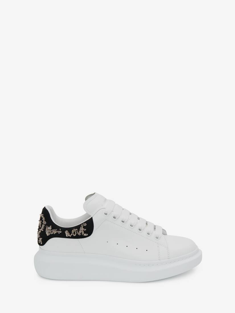 White smooth calf leather lace-up sneaker featuring a black suede heel counter detailed with Tree Graffiti embroidery. Large flat laces and Alexander McQueen signature on tongue. Oversized rubber sole. The sneaker comes with an additional set of white shoelaces. To lessen our environmental impact and to reduce cotton consumption, we will no longer be providing a dust bag with our sneakers. Material:100% Calf leather Product Code:711148WICG99089