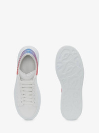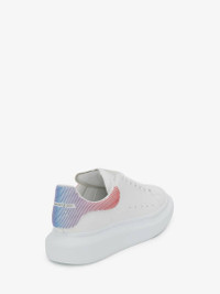 White smooth calf leather lace-up sneaker with rounded toe and trimmed with a micro dot heel detail with gradient effect. Large flat laces and Alexander McQueen signature on tongue and heel counter. Oversized rubber sole. The sneaker comes with fleck and white shoelaces. To lessen our environmental impact and to reduce cotton consumption, we will no longer be providing a dust bag with our sneakers. Material:100% Calf leather Product Code:711139WICG48983