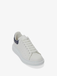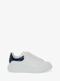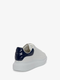 White and navy calf leather sneaker featuring an oversized rubber sole and a lux gloss high frequency heel counter. Finished with an Alexander McQueen signature on tongue and heel counter. The sneaker comes with an additional set of tonal shoelaces. To lessen our environmental impact and to reduce cotton consumption, we will no longer be providing a dust bag with our sneakers. Material:100% Calf leather Product Code:727390WICGW9095