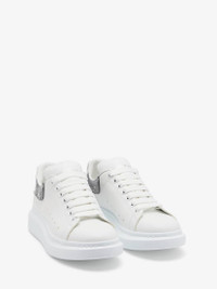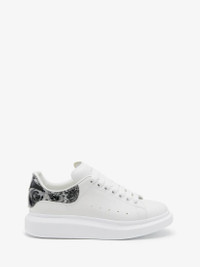 Presented in white calf leather, this Oversized Sneaker is detailed with a silver and black Wax Flower print on the heel counter. The sneaker is finished with the Alexander McQueen signature and a chunky rubber sole. Product details - Round toe - Alexander McQueen signature - Contrasting heel counter - Oversized rubber sole - Additional pair of shoelaces included - Product code: 794987WIFT59071 - Made in Italy