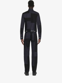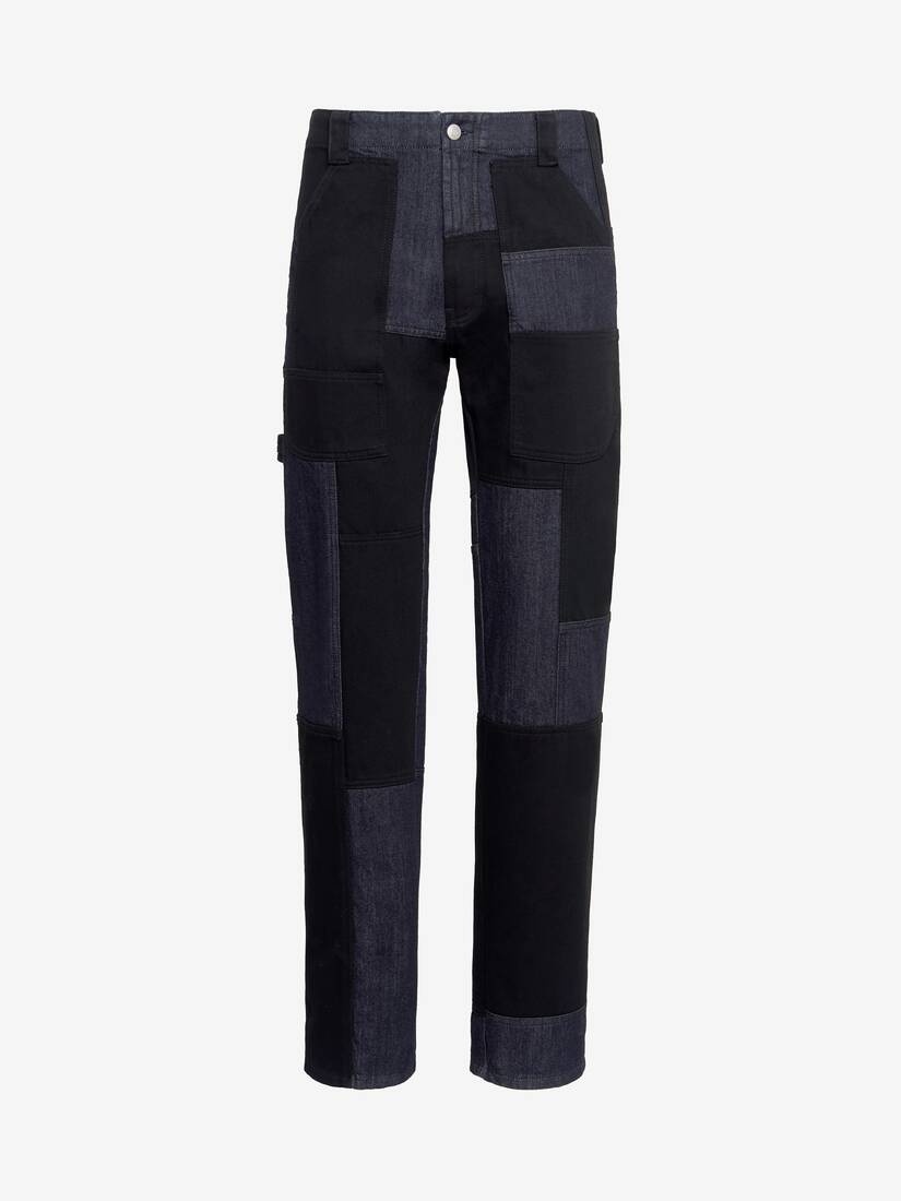 Patchwork workwear jeans in indigo and black denim featuring two side pockets and two patch pockets on the back. The jeans are finished with a zip and button fastening. Product Details: • Zip and button fastening • Regular fit • Made with organic cotton yarn Material:100% Cotton Product Code:759112QVZ210903