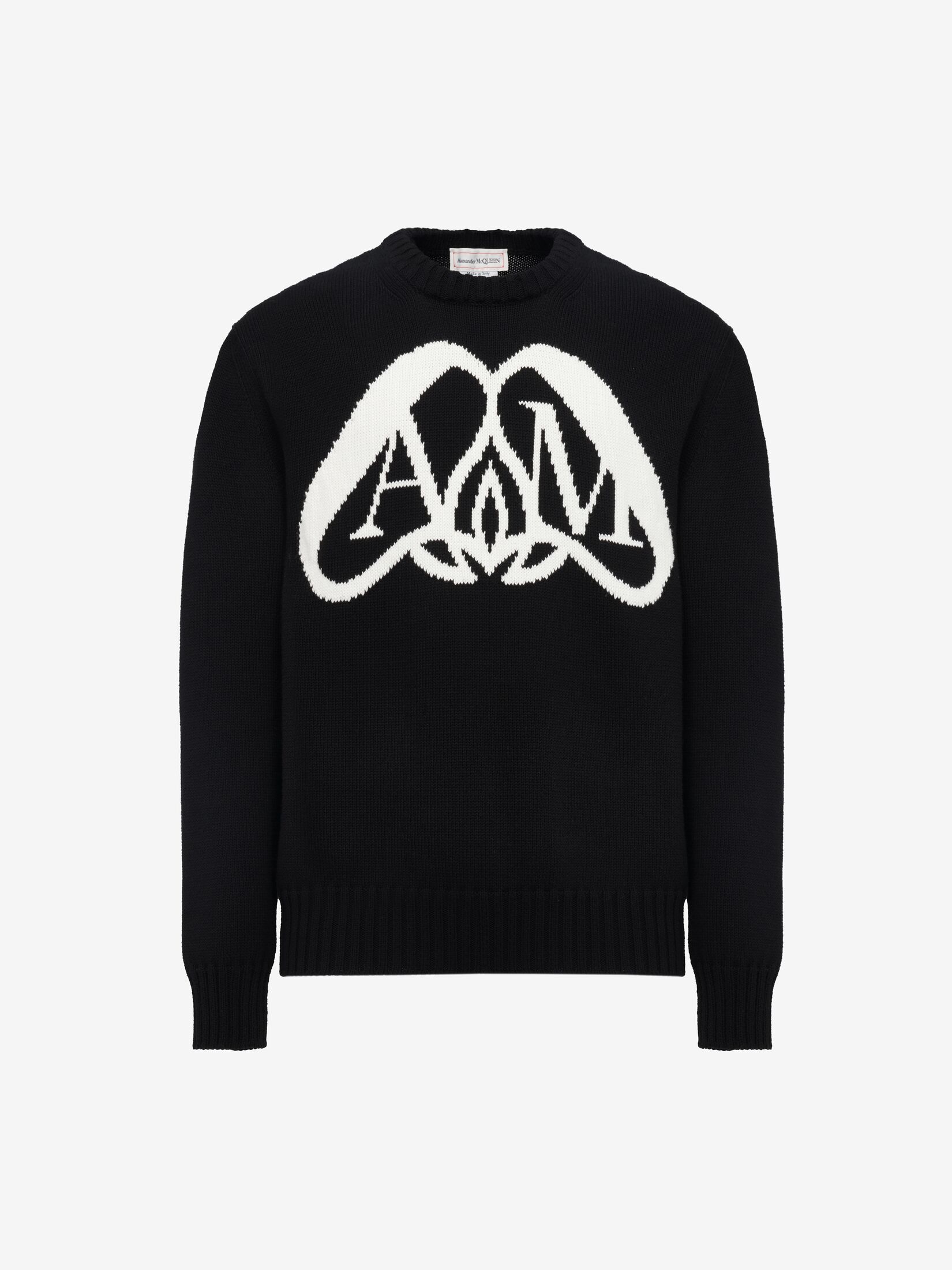 Black and ivory cotton crew neck jumper detailed with a half Seal Logo intarsia on the chest. The jumper is cut for a regular fit and finished with ribbed trims. Product details - Crew neck - Ribbed trims - Regular fit - Made with organic cotton yarn - Product code: 775849Q1A701080 - Made in Italy