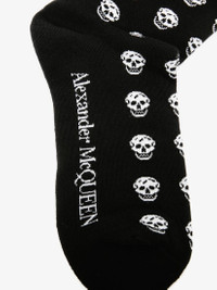 Black cotton socks, finished with ivory signature skull motifs and an Alexander McQueen signature on the base of the foot. Material:77% Cotton, 22% Polyamide, 1% Elastan Product Code:5759334B53Q1078