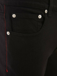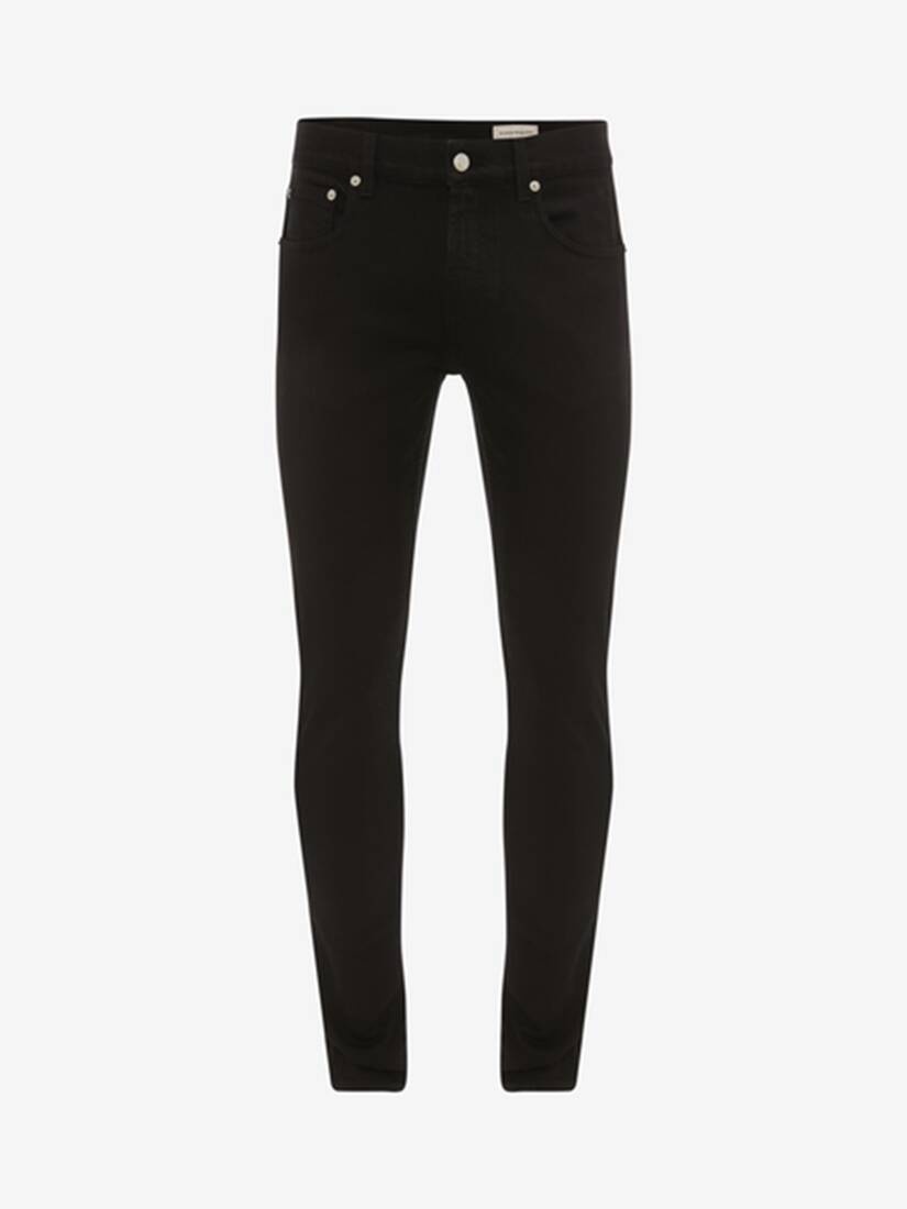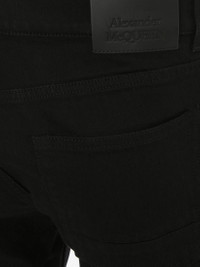 Black denim jeans detailed with a McQueen signature on the back pocket. Finished with a five-pocket design.